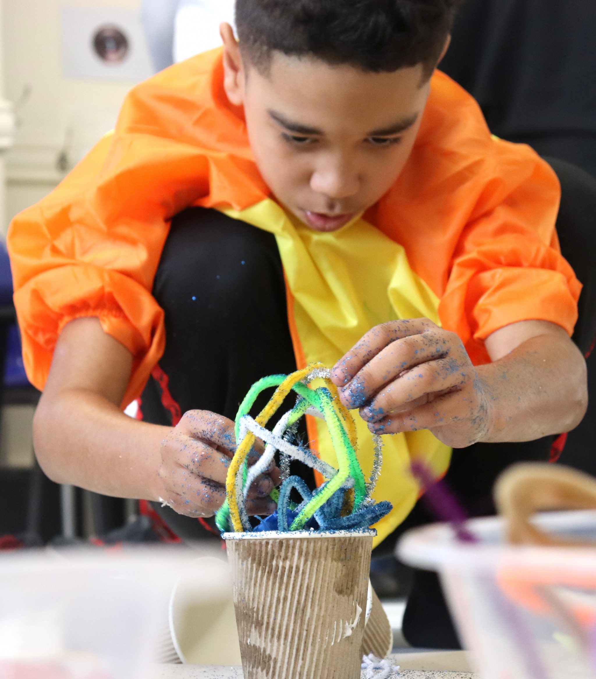 - Freedom to explore materials and processes without set outcomes that enables children to experiment, take risks, think divergently and learn collaboratively. This has led to evolved problem-solving and communication in groups.