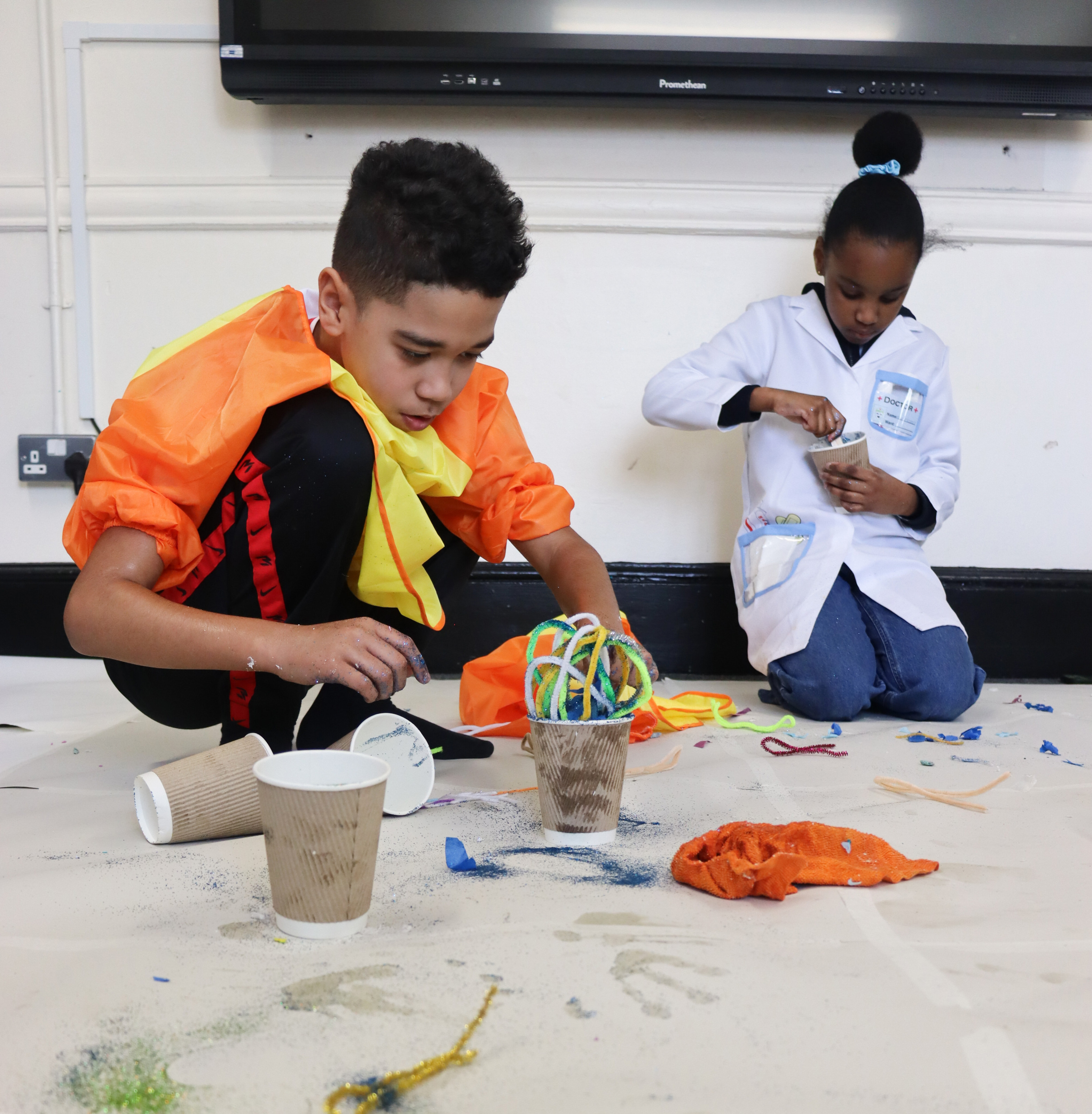 The project is delivered by Lead Artists and Assistant Facilitators who have co-designed a programme of workshops tailored to the support needs of teachers and students at Harris Academy Chobham Primary, Star Lane Primary School and Vicarage Primary School.